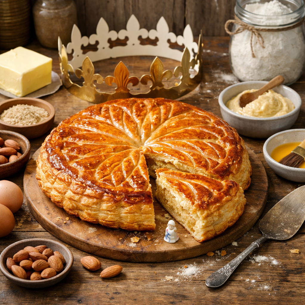 La galette des rois trouve ses origines dans l’Antiquité romaine, où l’on célébrait les Saturnales par un tirage au sort et un « roi d’un jour » choisi grâce à une fève. Au fil des siècles, la tradition s’est christianisée et s’est liée à la Épiphanie, fête commémorant la visite des mages ; la galette s’est progressivement implantée dans les régions francophones au Moyen Âge. Aux XVIIe et XIXe siècles, la pâtisserie évolue : la pâte feuilletée remplace parfois la brioche, la fève, d’abord en haricot, devient un objet en porcelaine, et les recettes se diversifient. La Révolution et l’essor de l’artisanat boulanger renforcent sa diffusion, donnant naissance à variantes locales comme la frangipane ou la brioche aux fruits confits. Aujourd’hui, elle conjugue patrimoine et marché : pâtissiers inventent de nouvelles saveurs tandis que des fabricants créent des fèves de collection. Ce gâteau illustre comment une coutume populaire traverse les époques, se réinvente et conserve sa fonction sociale : partager, célébrer et attribuer un instant de royauté éphémère.