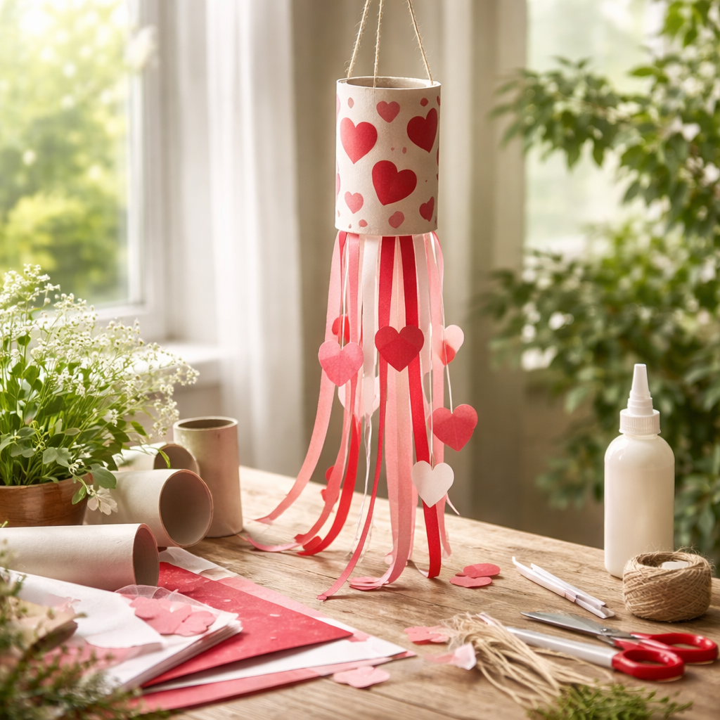 Mobile de Saint‑Valentin en rouleau de papier toilette — DIY déco facile et écolo