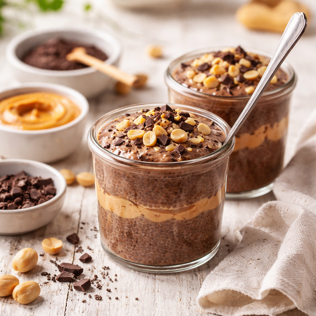 Pudding de chia chocolat & cacahuète — recette saine, gourmande et facile
